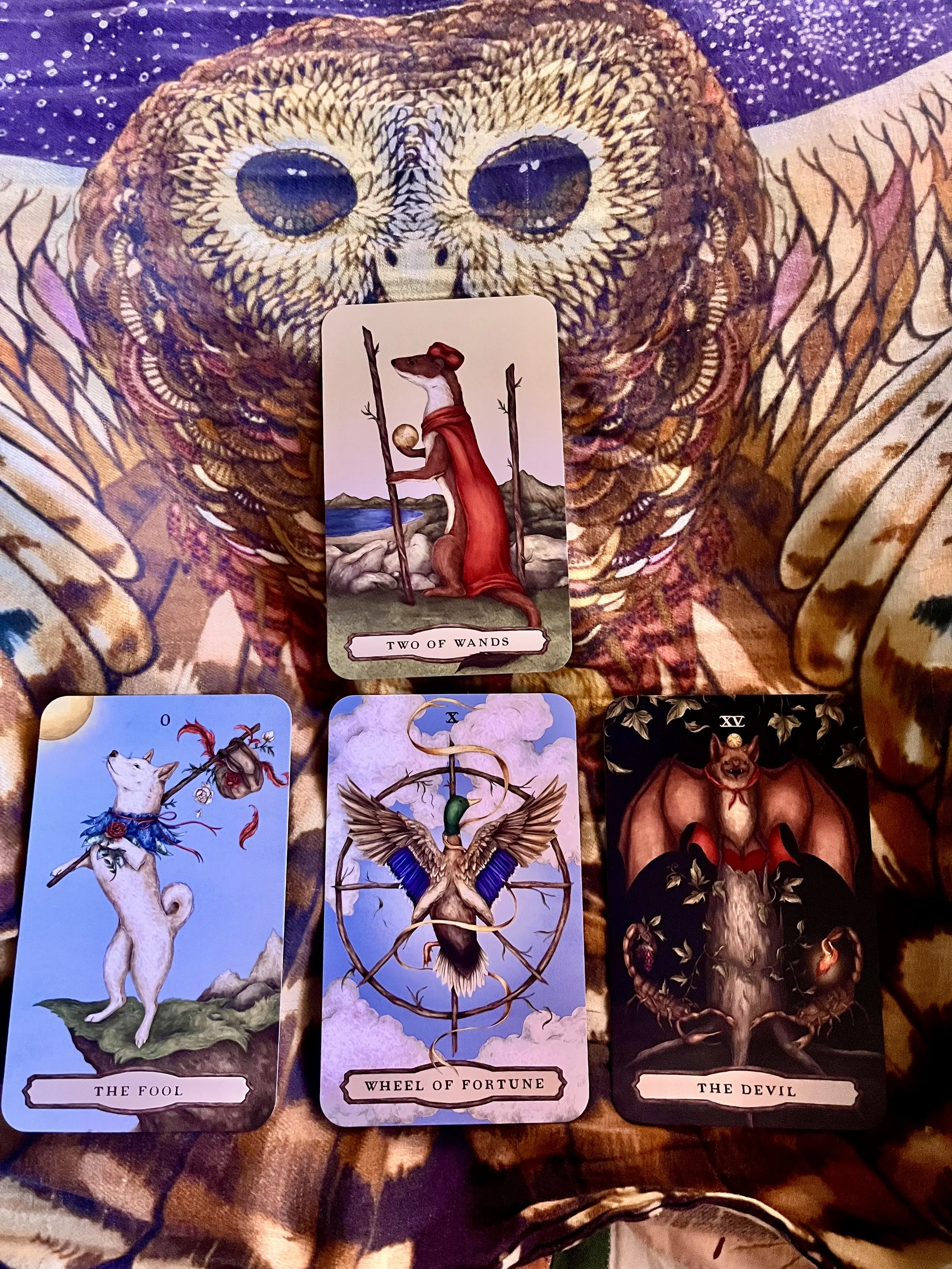 Hello to the friends of Iris X readings! Right before I got hurt, I bought a new Tarot deck for myself, and today... I Just Remembered this! It's like a brand new deck twice! I got it at The Humble Mug in downtown Brattleboro where they keep Tarot cards on the tables to peruse as you drink your tea. My kind of place. I shuffled The Tarot of Woodland Wardens by Jessican Roux, and asked for a reading for someone who will see this post. Read on and see if it's for you or someone that you know! Please share <3.