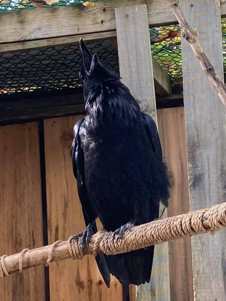 A lover of animals and nature, she cares for a raven that can't be released into the wild because of an injury. Wild ravens visit her homestead to converse with the raven. A multitude of animals are included in her care.