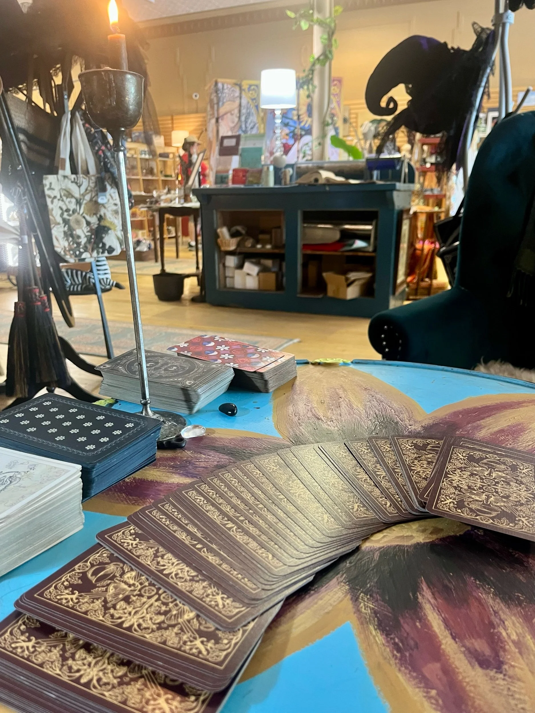Mini tarot reading $25.00 Monthly Tarot Predictions $25.00 Spell Kits $15.00 Self Care Box $25.00 Sore Muscle Care Box $25.00 Custom Potion Box $45.00 Tarot Card Reading $50.00 Green Witch Box $45.00 Spell Candle assortment $25.00